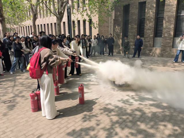 安全工作部(保卫处)现场演示了水带展开、接口连接、水压测试及出水操作的规范流程,详细讲解了快速对接消防栓接口、快速打开水带的技巧,强调了双人协作的重要性;对于灭火器的使用,重点演示了“提、拔、握、压”四字操作口诀,明确了“站在上风向、距离火源1.5-3米、对准火焰根部喷射”的关键要点。演示结束后,师生们踊跃参与实操体验,安全工作部(保卫处)逐一指导,确保每位参与者都能熟练掌握操作技能,真正实现“学懂、弄通、会用”。参训师生纷纷表示,培训内容实用、形式新颖,不仅掌握了消防器材的使用方法,更增强了消防安全责任意识,今后将把所学知识运用到日常工作学习中,主动排除身边火灾隐患。